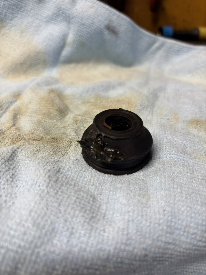 ここが劣化してひび割れると、中のグリスが漏れて異音やガタつきの原因になります。