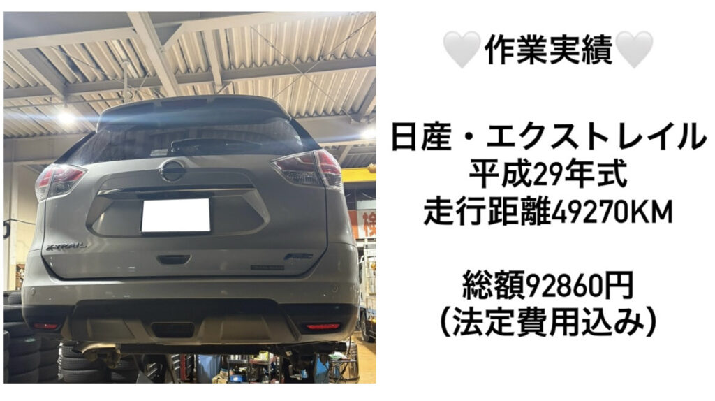 先日実施した日産 エクストレイルの車検内容をご紹介いたします!