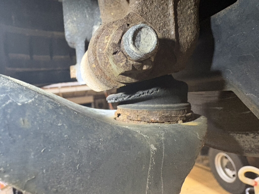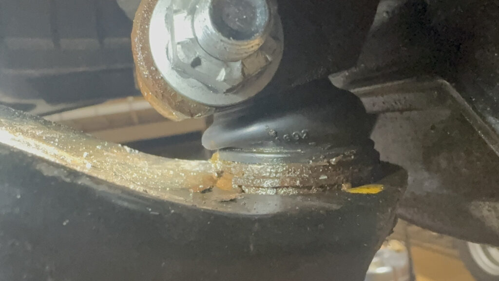 劣化したまま放っておくとゴムが破れ、中のグリスが飛び散り、最悪の場合は関節部分(ボールジョイント)が破損して走行不能になってしまいます。