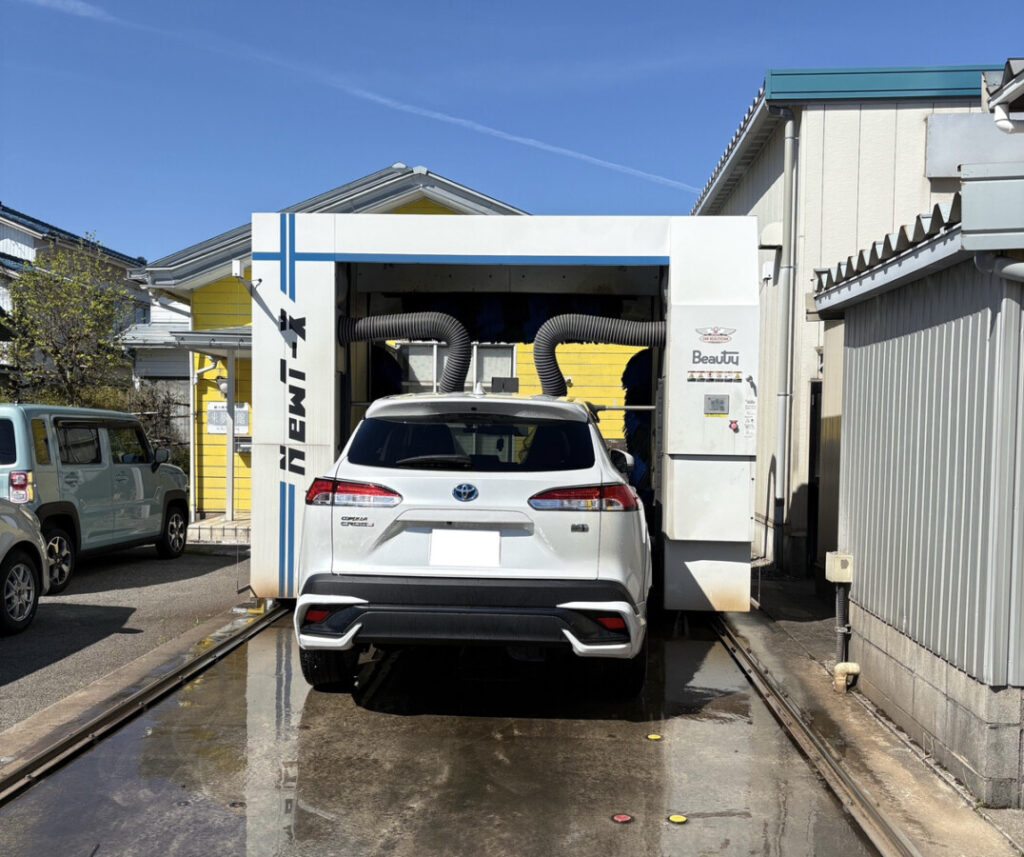 実は、当店の工場の裏には、そんな頑固な汚れを一掃する洗車機が隠れているんです!