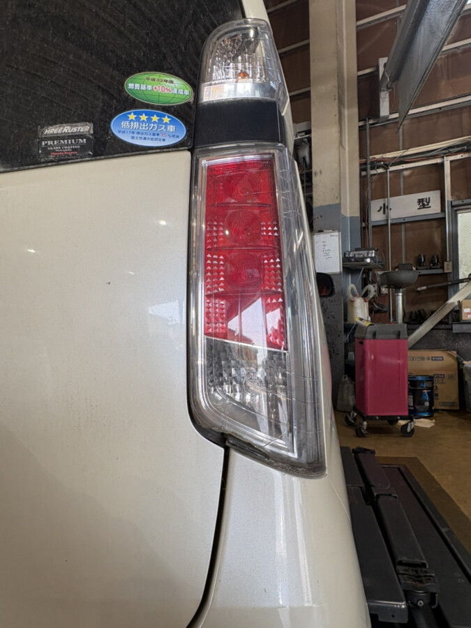 今回の車検でポイントとなったのは、右テールランプの破損です。
